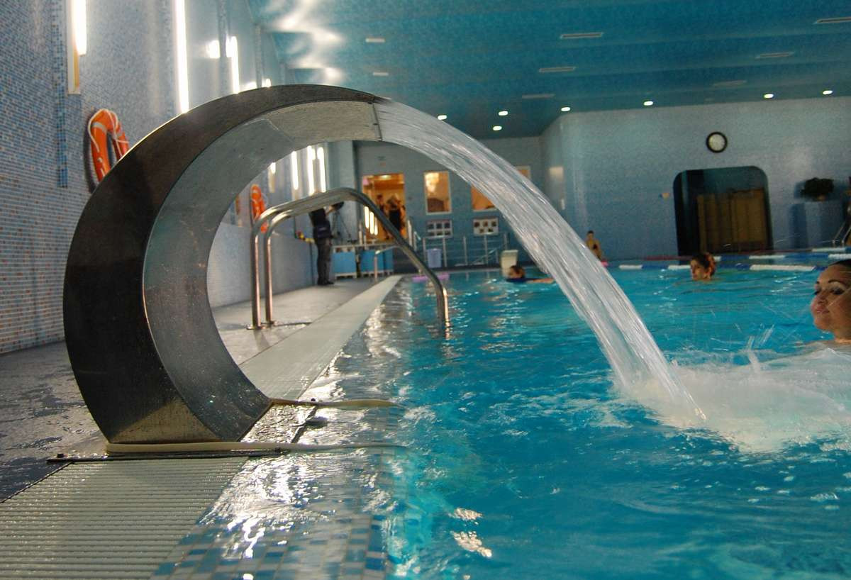 - водопад (декоративная изюминка бассейна, которая к тому же выполняет функцию шейного массажа, придавая традиционным водным процедурам элементы необычайного наслаждения).