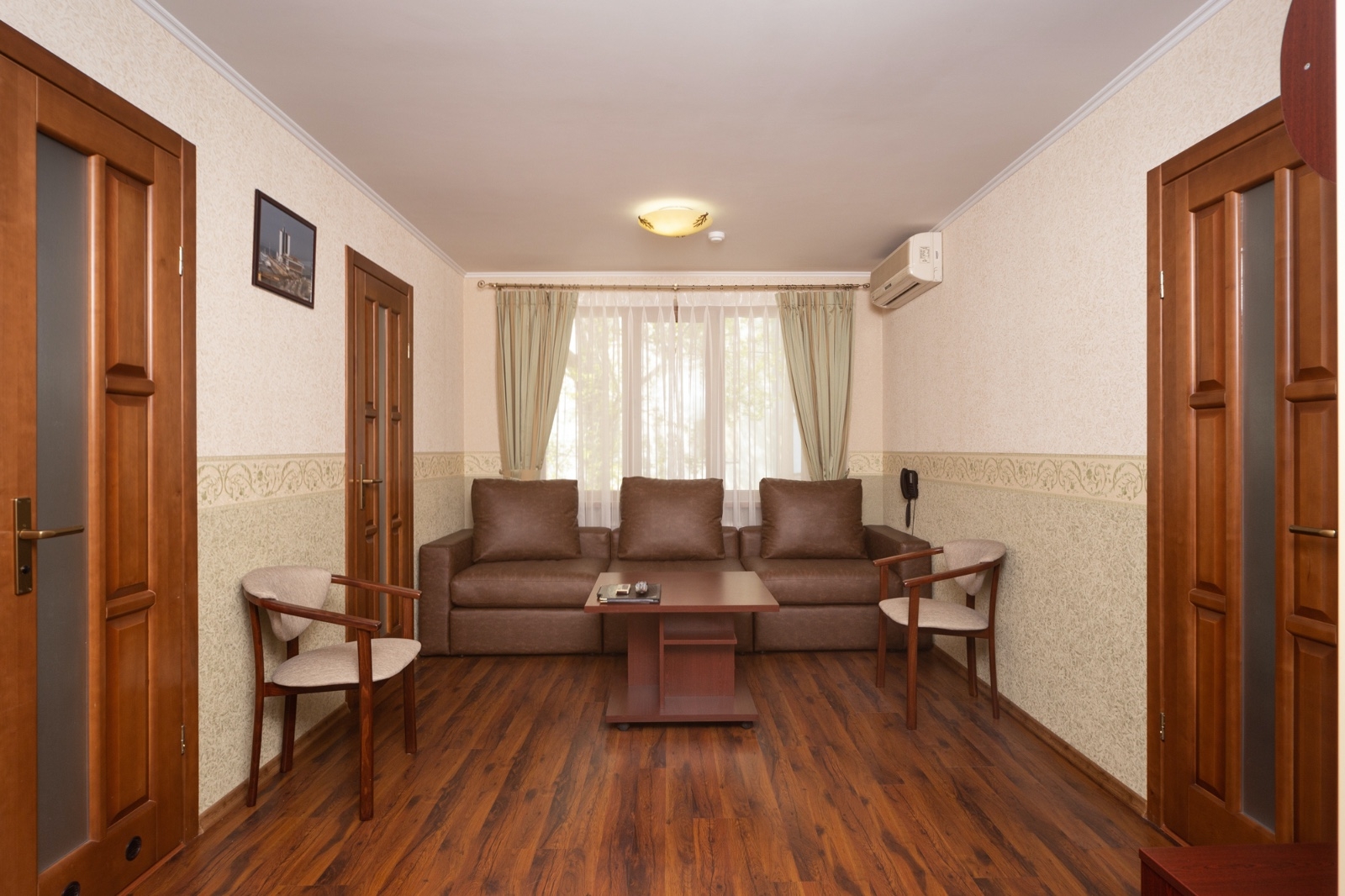 Для тех, кто отдыхает с семьей, мы с радостью предоставим трехкомнатный номер повышенной комфортности. Мы уверены, что родители с детьми по достоинству оценят этот номер.