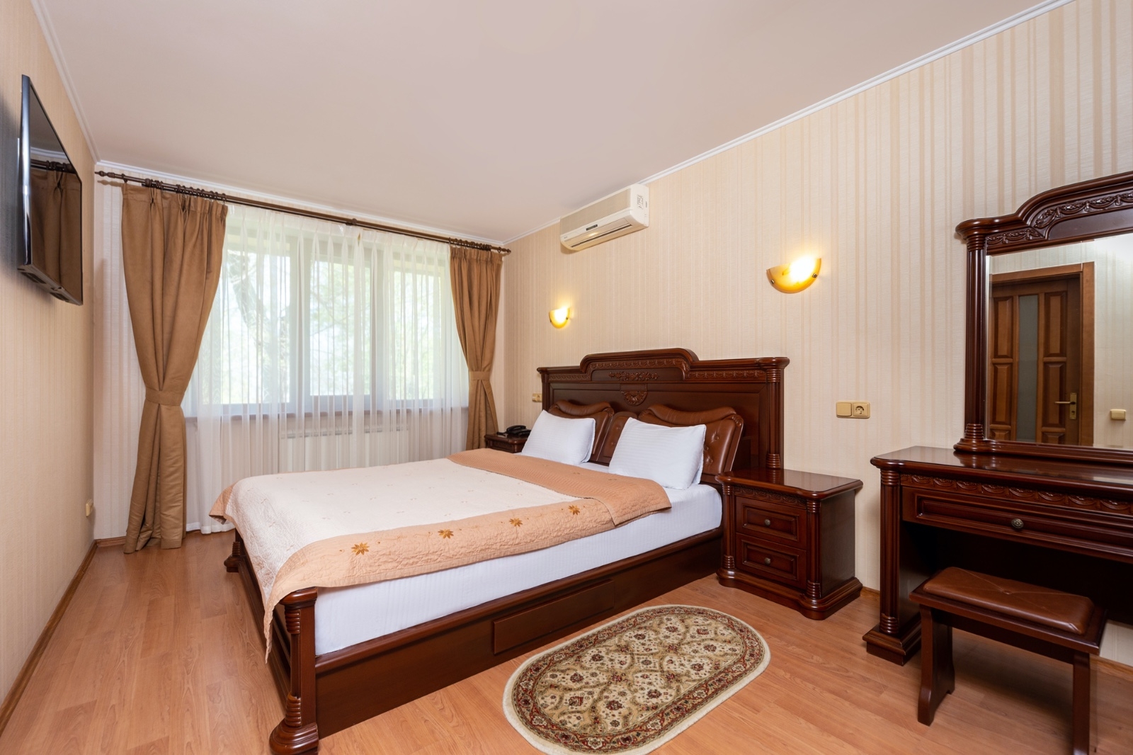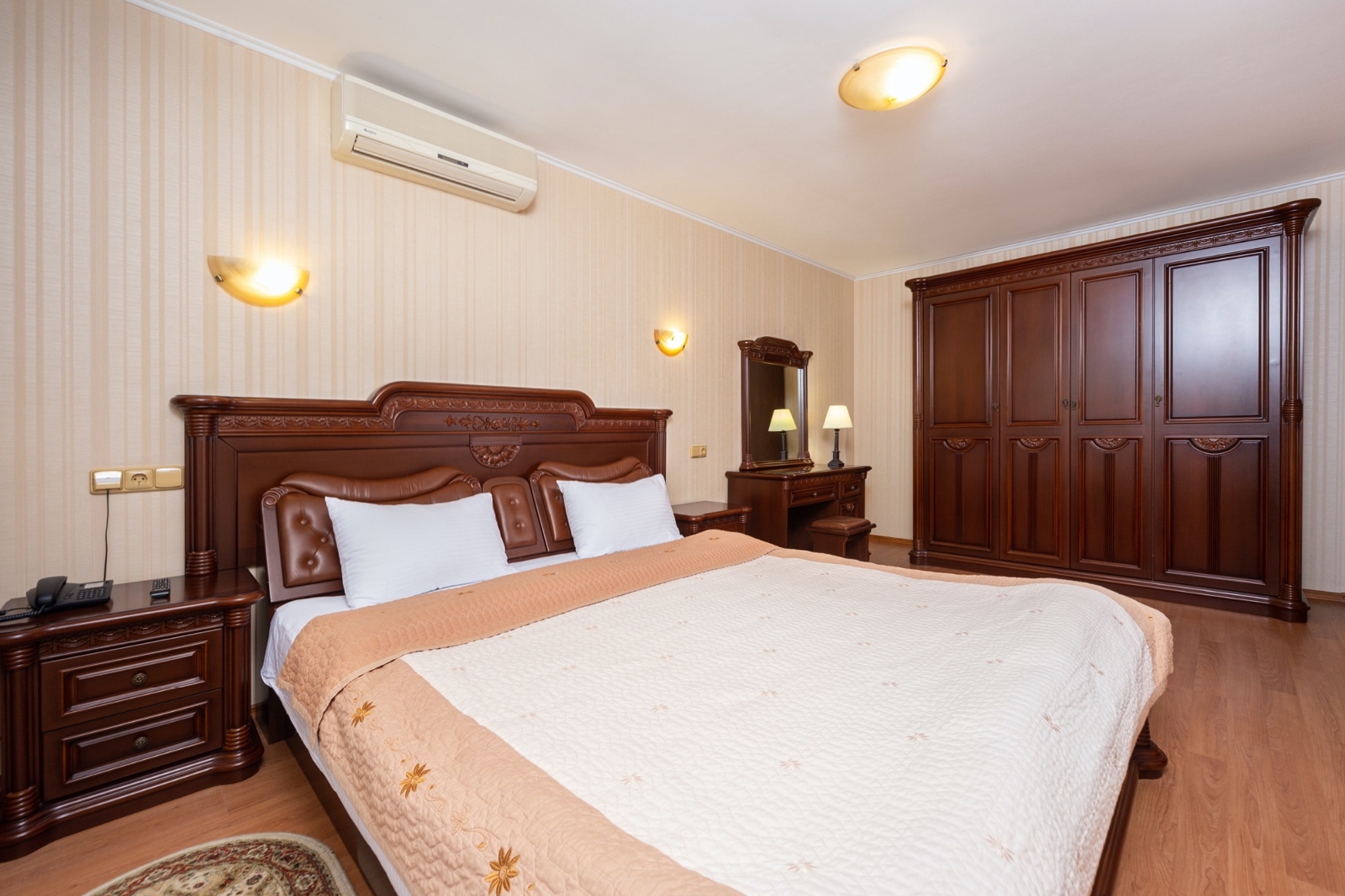 Двухкомнатные номера «Люкс» имеют просторную планировку и классический интерьер. Номера подходят для ценителей комфортного отдыха и элегантности. Утончённость интерьера позволит вам расслабиться и полноценно отдохнуть.