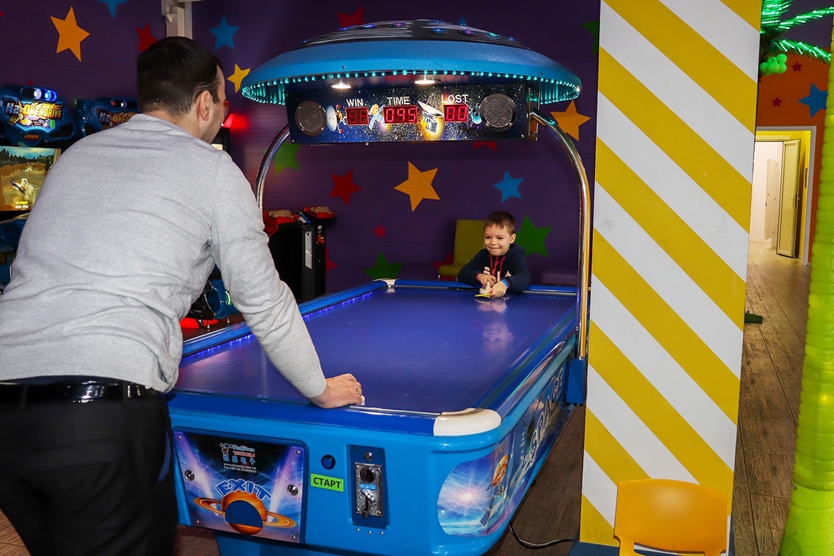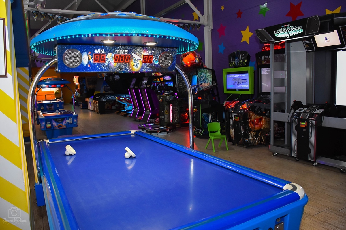 На 2 этаже находятся 30 игровых автоматов для детей от 7 лет: стрелялки, гонки, спортивные игры, увлекательные симуляторы, аэрохоккей, большой автодром, цена которых варьируется от 12 до 30 грн. за 1 игру.