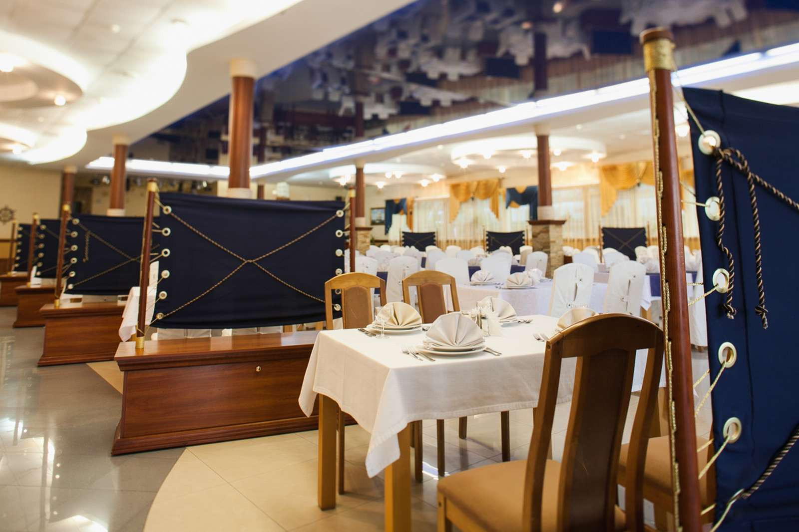 Вас несомненно удивит кулинарное искусство, воплощенное в разнообразии фирменных блюд, представляющих не только особенности одесской, но и национальной украинской, а также европейской кухонь. Здесь, в ресторане у самого синего моря, Вам предложат также вегетарианское и детское меню.
