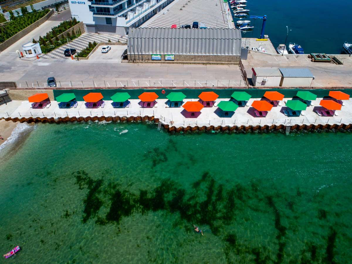 Территория пляжного комплекса занимает более 300 метров черноморского побережья.