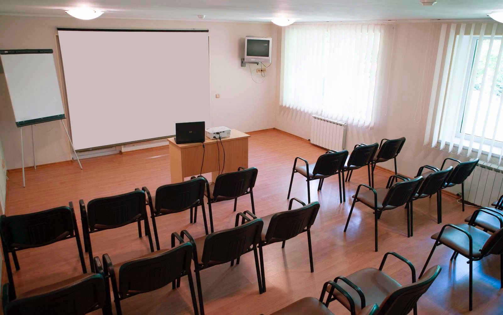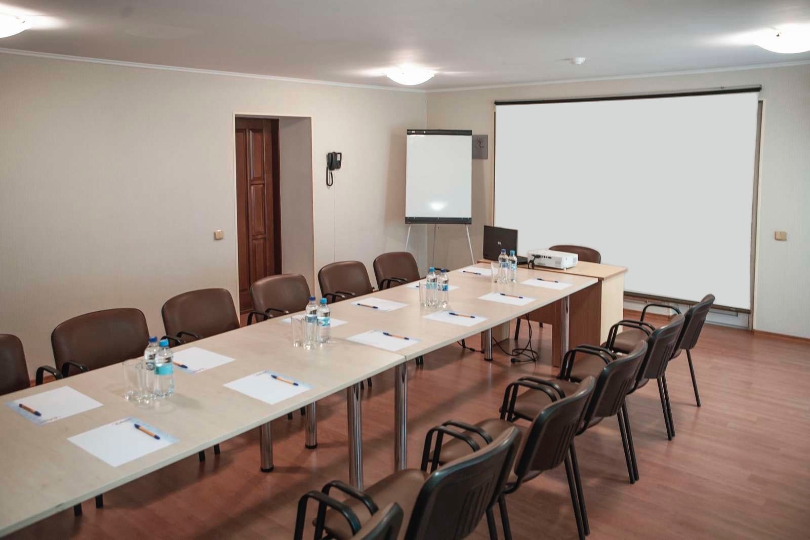 Зали забезпечені зручними посадочними місцями, системою кондиціювання повітря, мікрофонами та звуковим обладнанням, ноутбуком і проекторами, фліпчартами, WI-FI free та супроводом технічного спеціаліста.