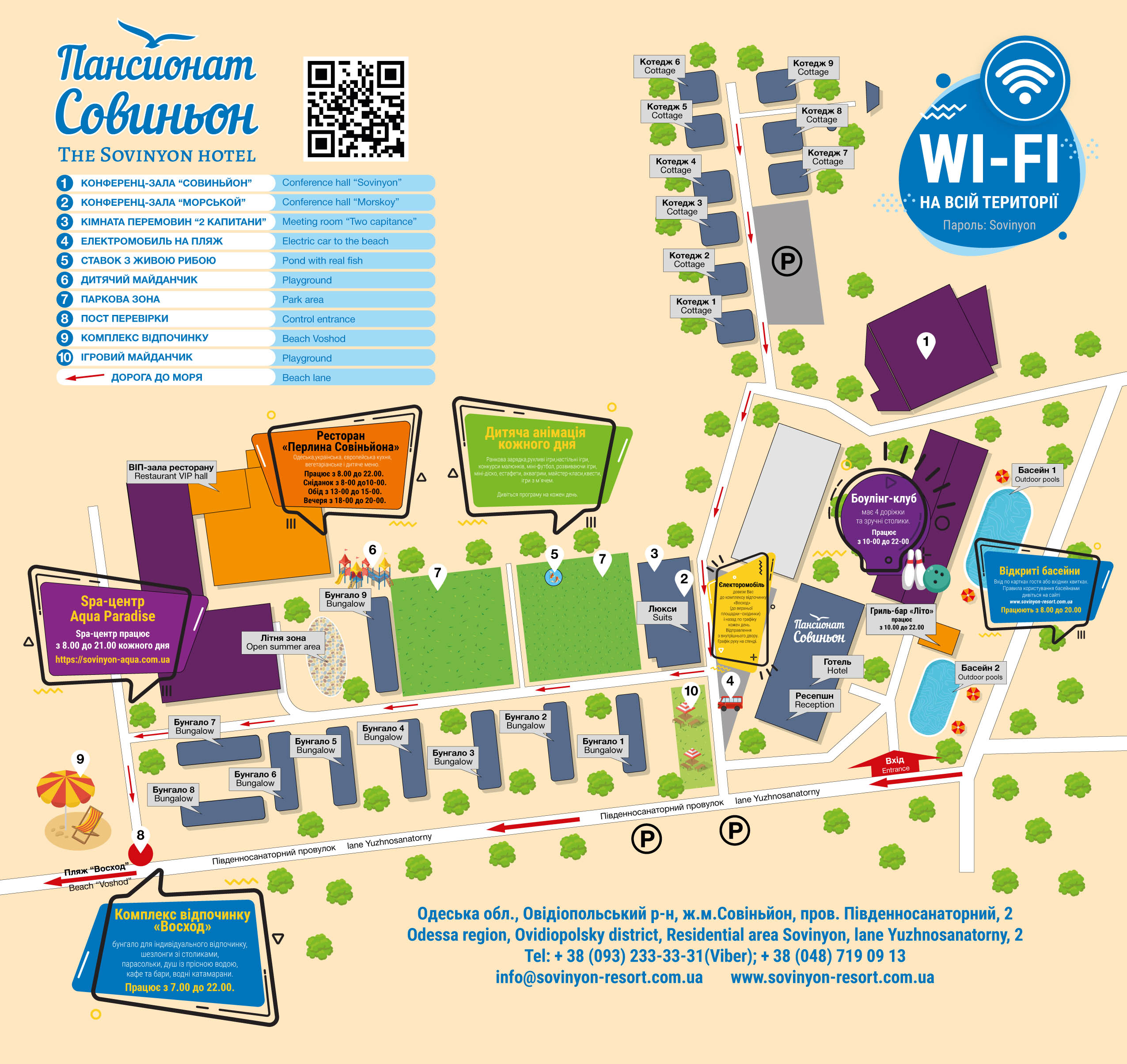 Гриль-бар «Літо» не працює. Ресторан не працює. На території працює Spa центр Aqua Paradise.