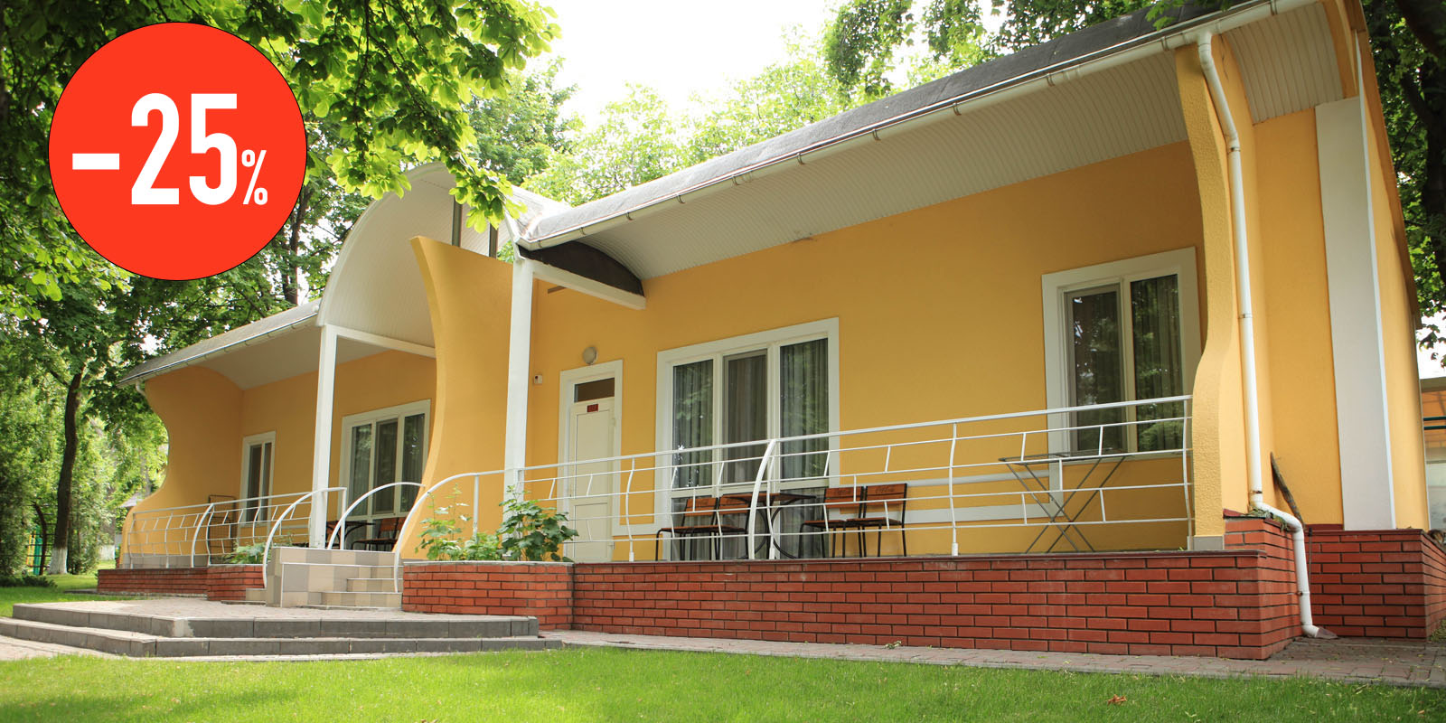 Пансионат «Совиньон» предлагает для отдыха на природе 4-х местные бунгало и 2-х местные номера категории Люкс со скидкой 25%.